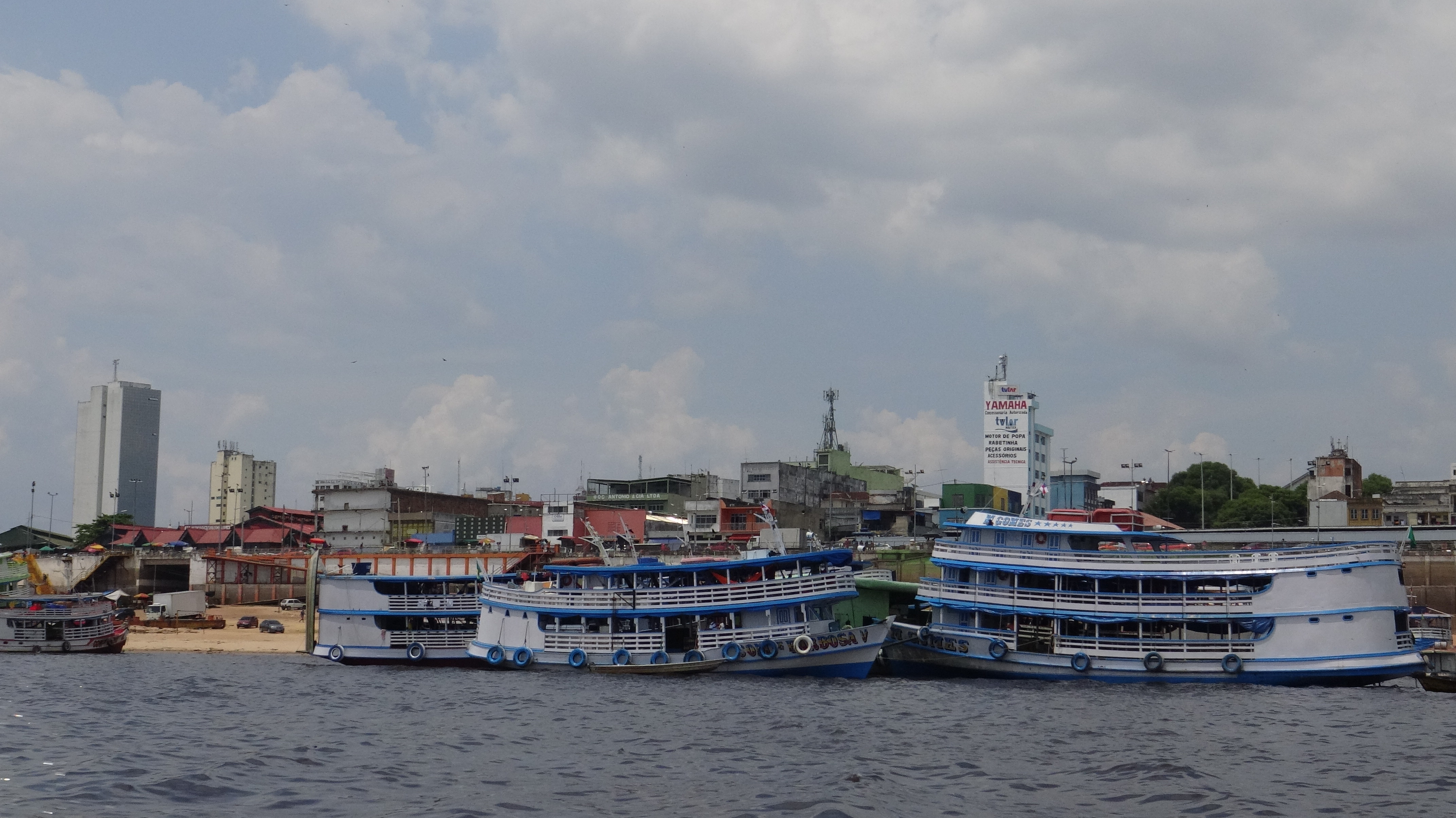 Išbandyti didžiuosius maršrutinius upėlaivius būtų buvę įdomu, bet pirmą kartą Amazonijoje trūko laiko. Tačiau priemiestiniu motorlaiviu plaukėme. Autobusas iki jo vežė keliolika kilometrų: per centrą, per prabangių daugiabučių rajoną Ponta Negra kuriame stebėdamas į pakrantės smėlį besiplakančias plačiosios Negro upės bangeles gali įsivaizduoti esantis pajūryje. Galiausiai ties paskutine stotele Manausas staiga baigėsi, o tų, kam dar reikėjo tęsti kelionę, laukė skurdžios prieplaukos. Neilgai trukus radome tinkamą (Marina davi) ir plaukėme į Vila Paraiso kaučiuko muziejų. Pakeliui laivas stojo Lua paplūdimyje (esą geriausias Manause), skurdžiame Nossa Senhora de Fatima priemiestyje, išleido vieną vyriškį tiesiai namo (jis gyveno upėje plaukiojančiame name). Apskritai upėse prie Manauso verda gyvenimas: yra degalinės laivams, restoranai bei viešbučiai į kuriuos net norėdamas nepatektum nuo kranto.