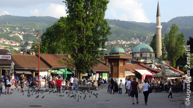 Centrinė Čaršijos aikštė su Sebiliu - 1753 m. iš labdarybės pastatytu nemokamo vandens šaltiniu (tiesa, vanduo teka labai lėtai: senutė butelį pildėsi gal minutę). Aikštė nuolat pilna ir balandžių bei jų šėrėjų