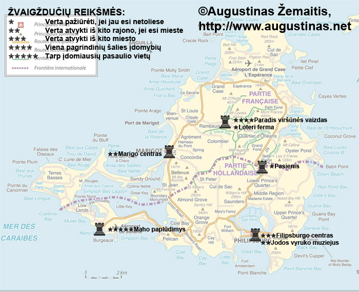 Šv. Martyno sala. Sąsmauka su kurortais supa ežerą. Pusė jos priklauso Olandijai, pusė - Prancūzijai