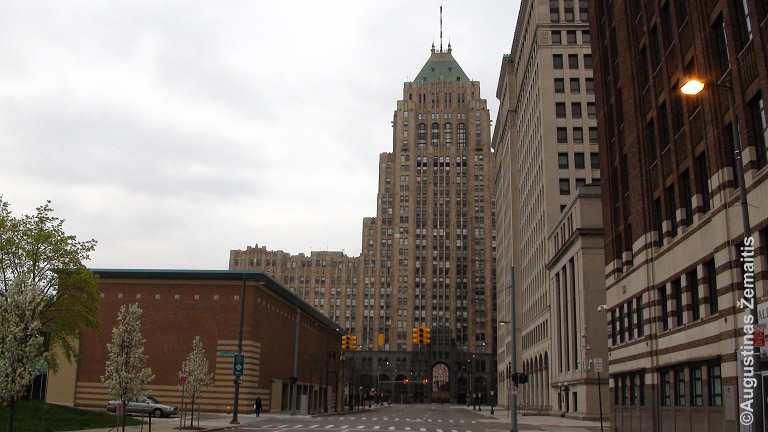 Į Detroitą pirmąsyk atvykome šeštadienį ir centras buvo tuštutėlis. Tarsi kokio Lietuvos rajoninio miestelio. Tik masteliai kiti – 40 aukštų Kadilako pastatas, kadais aukščiausias pasaulyje už Niujorko ribų. Didinga 1902 m. apygardos rotušė, apklijuota skelbimais “parduodama”. Ją baikščiai fotografavo grupelė turistų, besistengusių laikytis greta vienas kito.