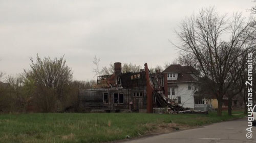 Kiekvieną kartą keliaudamas į Detroitą abejoju, ar išvysiu tai, ką kas kartą ten randu. Nes internete nuolat skelbiama apie tūkstančius, dešimtis tūkstančių Detroito mero nurodymu nugriaunamų apleistų namų – tai gal jų neliks išvis? Bet kur tau – tai tik menka dalis sunykusio Detroito. Tarp tuščių sklypelių boluoja gausybė griuvėsių: čia tik langai išdaužyti, čia jau viskas susmegę. O juk kadaise tai buvo tvarkingos namų eilutės ant brangios miesto žemės.