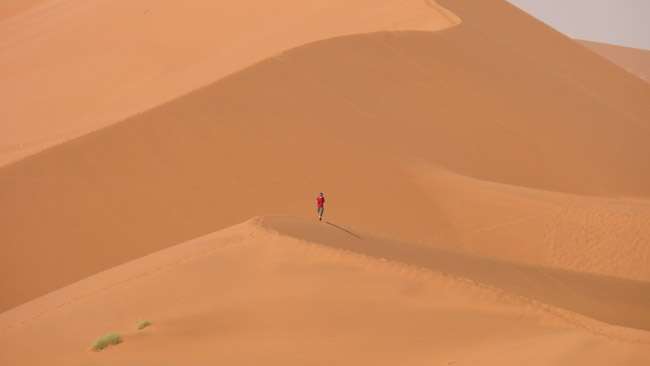 Visa tai paliko dar didesnį įspūdį, nei pats Rišatas. Tarsi kokiame Dakaro ralyje, sekant nykstančiomis kitų turistinių džipų vėžėmis. Staigus stabdymas: vėjo supustytas kopos nuolydis per status, reikia apvažiuoti. Per visą laiką ten tesutikome pora kitų turistinių džipų, o kol lipau į Rišatą, kol dairiausi nuo jo viršūnės – kiek akis užmato nemačiau nė vieno kito žmogaus! O juk keliavome sezono metu!