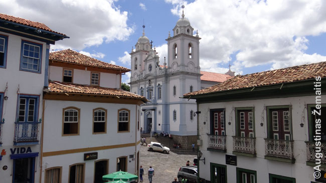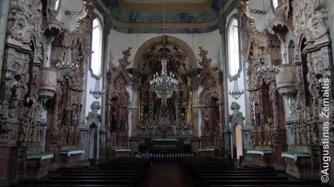 Deja, nuostabiąsias miestelio bažnyčias tegalėjome apžiūrėti iš išorės. Buvo pirmadienis ir jos uždarytos. Mat bažnyčios visame Minas Žeraise ne mišių metu veikia tik kaip muziejai. Pažiūrėti į tiesiog „eilinį baroką“ galima už kokį eurą, o įėjimas ten, kur altoriai puošniausi, o lubos labiausiai tapytos, kainuoja ir po tris. Tiesa, už tai leidžiama aplankyti ir vietas, kur eilinėse bažnyčiose tegali užeiti kunigas ar patarnautojas: medžio raižiniais dekoruotas zakristijas, balkoną prie vargonų.
