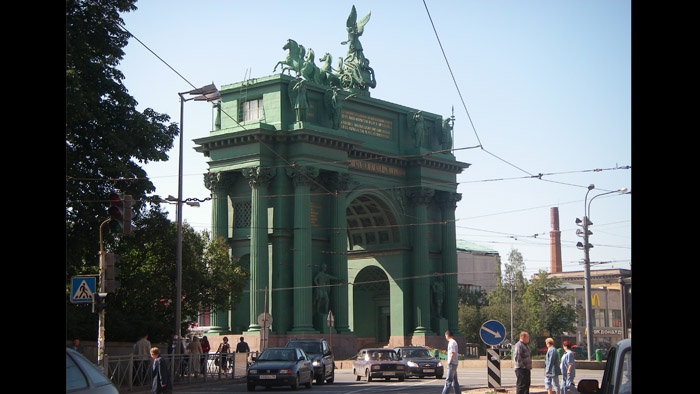 Nevos triumfo arka, statyta rusų pergalei prieš Napoleoną. Panaši Paryžiuje pastatyta Napoleono pergalėms. Jei Prancūzijoje tokie mūšiai ir pergalės labiau - tolimos istorijos atmintis, tai Rusijoje karas, veteranai, užkariavimai - ir šiandien aktualios temos