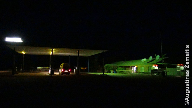 91 benzino, kuriuo “girdėme” savo baką, kainos Australijoje skiriasi labai smarkiai. Miestuose litras atsieidavo 1,3 dolerio, miesteliuose – 1,5 ar 1,6, Autbeko atokybėse – 1,8 ar 1,9, o prie Uluru – visus 2,1. Nesipilti yra loterija: gal bus pigiau, gal brangiau, gal išvis uždaryta. Kai degalinė vienintelė 200 ar 400 km ruože, sąlygas diktuoja jos šeimininkas. Dar ruošiantis kelionei atminty įstrigo vienas Tripadvisor komentaras – “XIX a. kelių plėšikai tebegyvi, tik šiais laikais jie valdo pakelės namus ir plėšia nesusipratusius turistus savo maisto ir benzino kainų reketu“. Tad bent jau maisto ir gėrimų vežėmės iš miestų.
