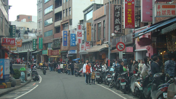 Prekybinė centrinė gatvė Danšujuje, kuris - ir kaip Taipėjaus kurortas. Taivane - itin daug motorolerių