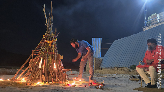 Kuriamas Holika Dahan laužas (baba – dešinėje)
