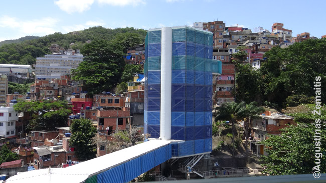 Susilaukusi protestų, kad Olimpiadai ruošiamasi eilinių piliečių sąskaita, valdžia stengėsi, kad infrastruktūros gerinimai, skirti turistams, būtų naudingi ir skurdžiausiesiems. Viena tokių vietų – Mirante da Paz liftas: gretimos favelos gyventojai juo gali grįžti namo iš Ipanemos, o turistai nuo viršaus – pasigėrėti nemokamais vaizdais. Deja, nepanašu, kad suderinti abu dalykus būtų pavykę: nors liftas atrodo moderniai, buvome vieninteliai turistai tarp faveliečių – užsukus į apžvalgos aikštelę paaiškėjo kodėl: ten viskas nudrengta, prišiukšlinta, voliojosi net išmatos.