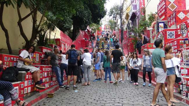 Paėjęs į pietus nuo centro pro modernią katedrą, patenki į Lapa rajoną, kurio simbolis – buvęs akvedukas, nūnai tapęs tramvajų, kylančių į Santa Tereza rajoną ant kalno, trasa. Dabar tai – menininkų, muzikantų kvartalai. Tačiau atėję po pietų, ten radome kaip niekur Rio de Žaneire daug narkomanų ir benamių, o dauguma kavinių buvo užvėrusios sunkias žaliuzes. Bent jau 125 m Selarono laiptais pasigerėjome – juos įrengė čilietis menininkas 1990-2013 m. (tikriausiai būtų ir toliau gražinęs rajoną, bet 2013 m. ant tų pačių laiptų jis, prieš tai susilaukęs grasinimų, rastas negyvas).
