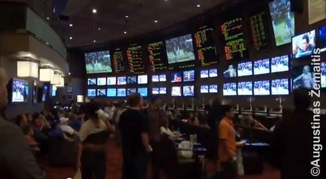 MGM Grand megakurorto lažybų kambarys - dešimtys televizorių rodo įvairiausias sporto šakas, o žiūrovai čia atsidūsta, čia ploja